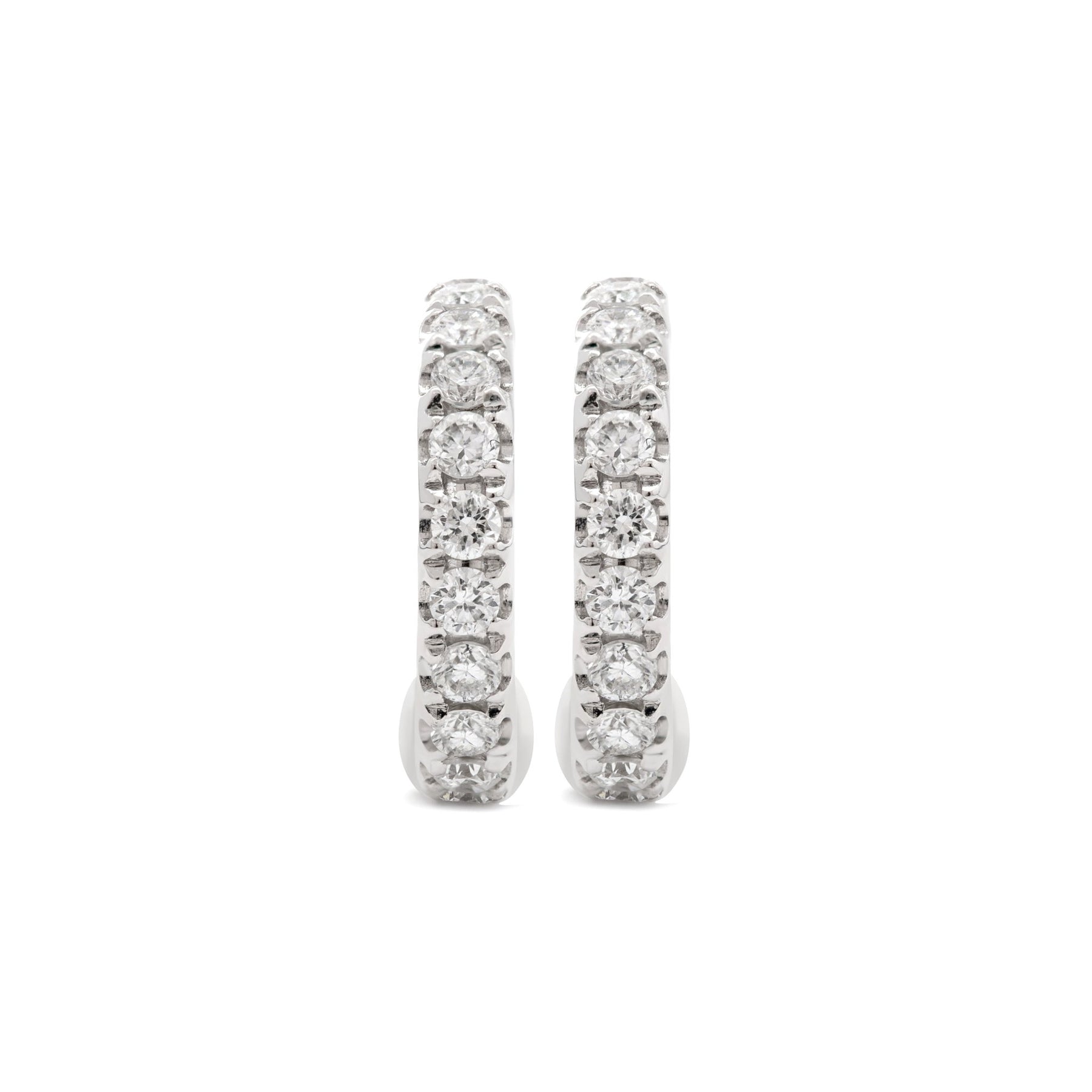 18K White Gold Round Cut Lab Diamond Huggie Earrings - FIORESE JEWELRY