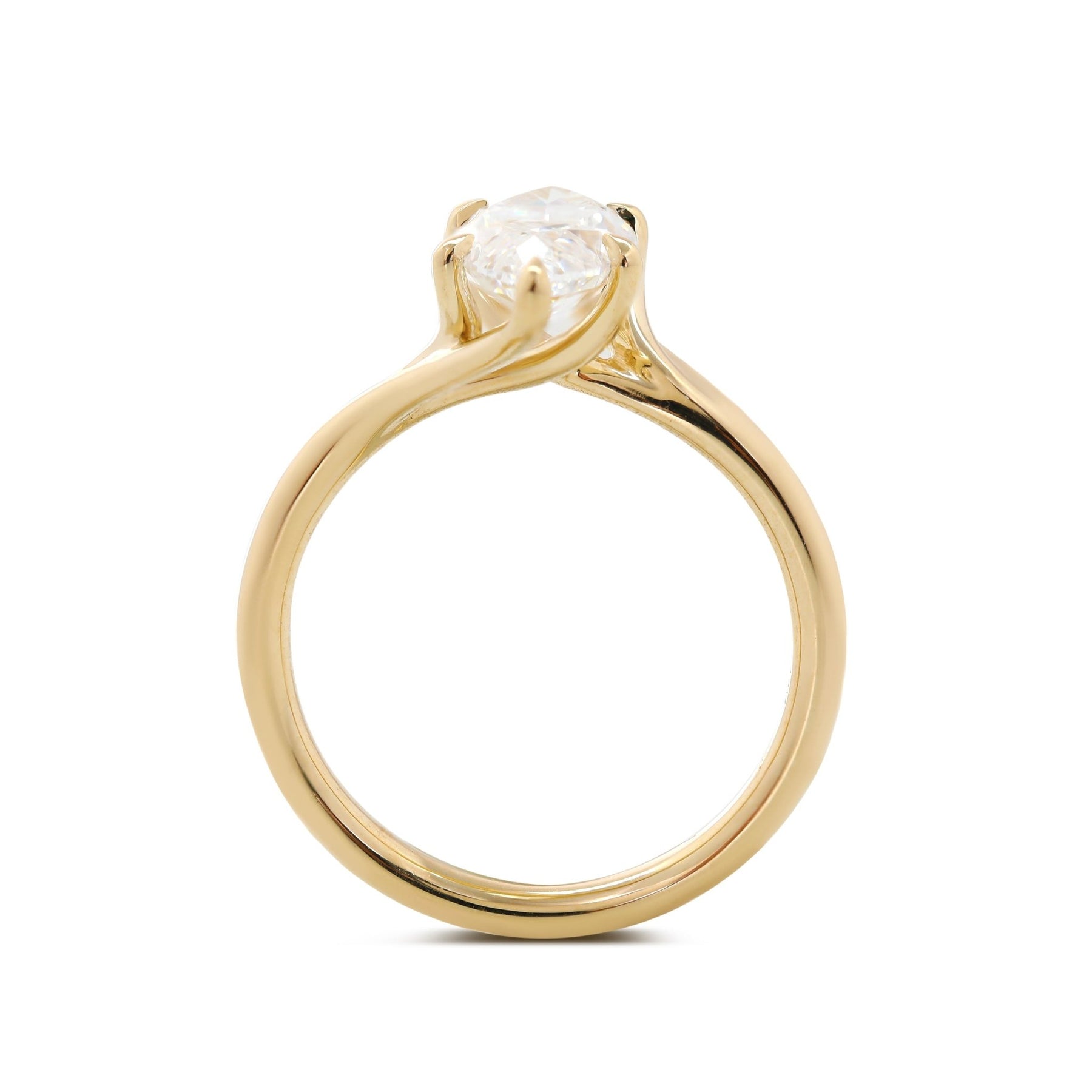 Marquise Cut Lab Diamond Six Claw Prongs Solitaire Ring — Art Nouveau Nature - Inspired - FIORESE JEWELRY