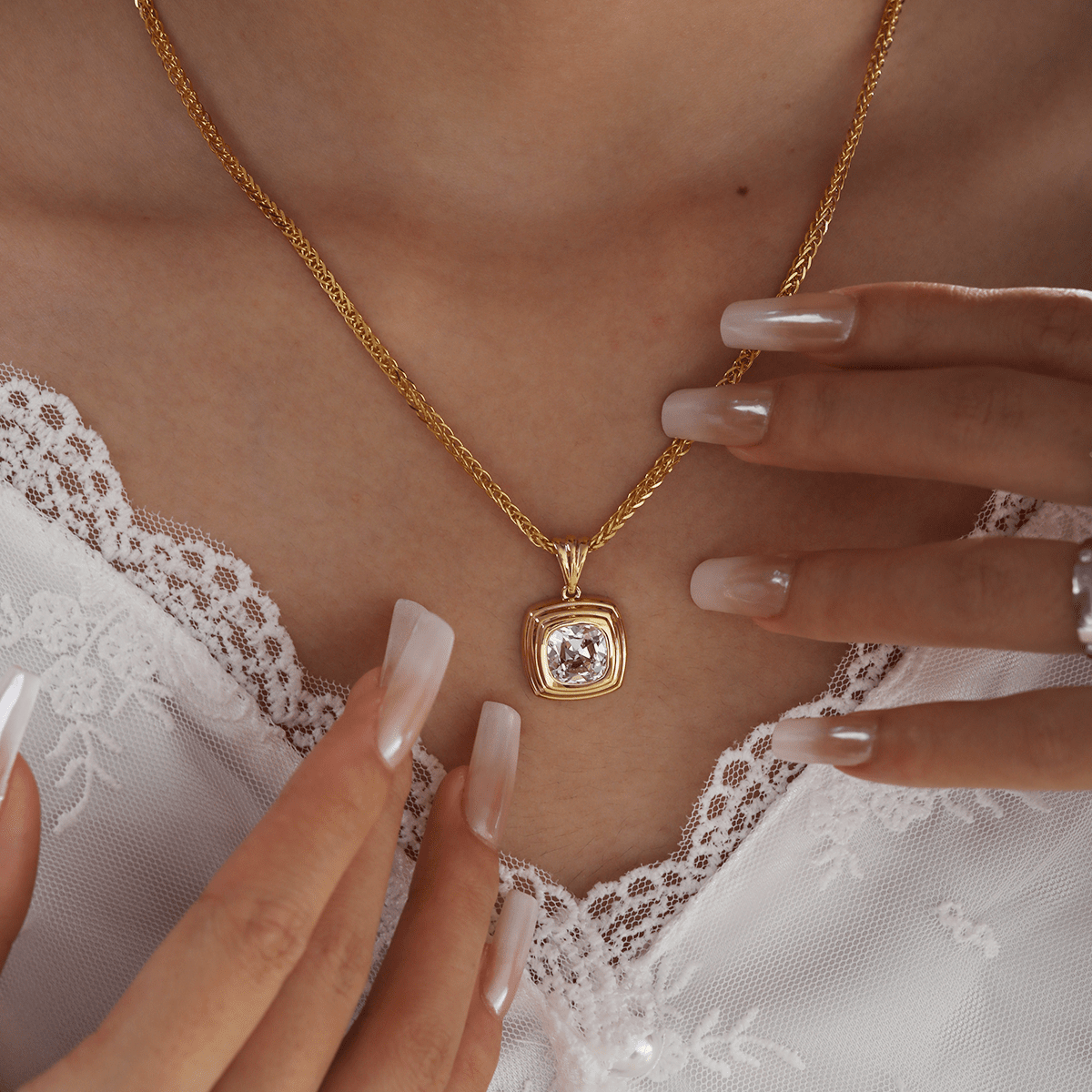 4 CT Old Mine-Cut Lab Diamond Flat-Topped Stepped Pyramid Pendant - FIORESE JEWELRY