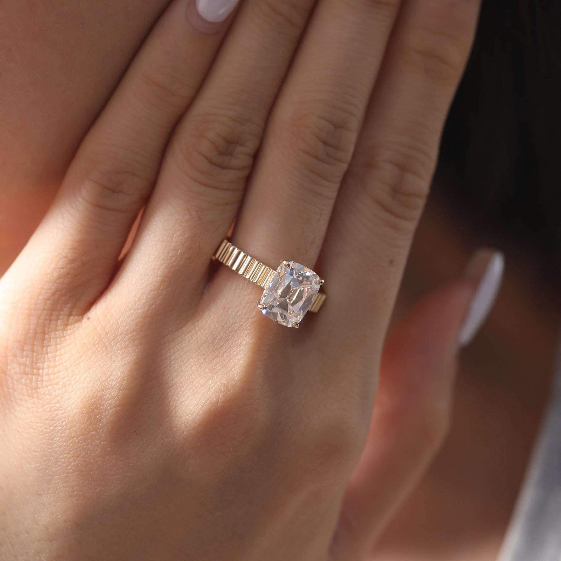 Elongated Old Mine-Cut Lab Diamond Ring with Hidden Halo - FIORESE JEWELRY