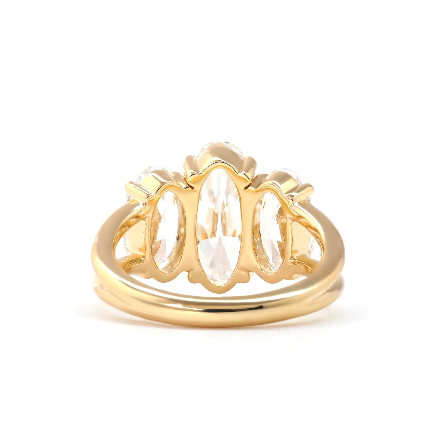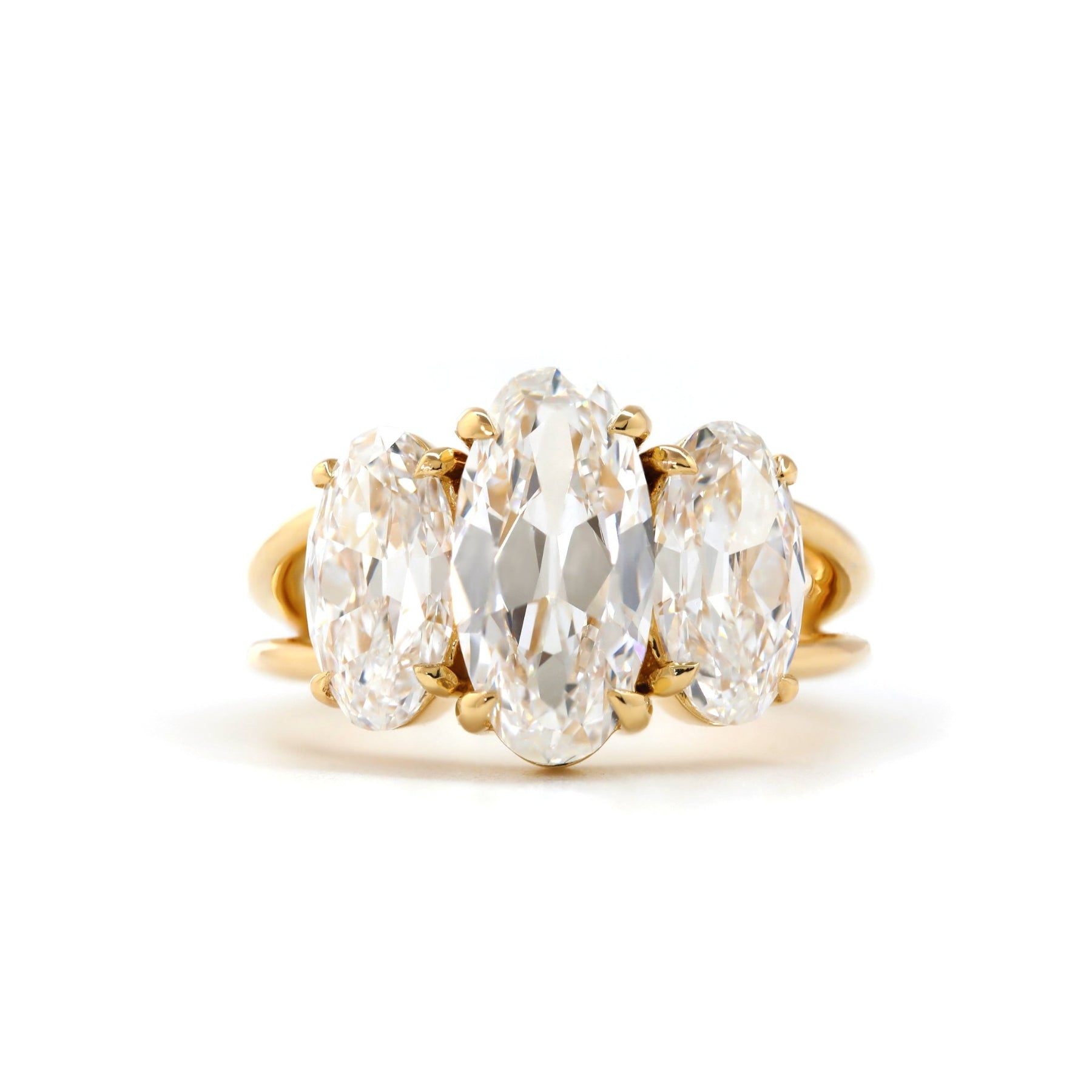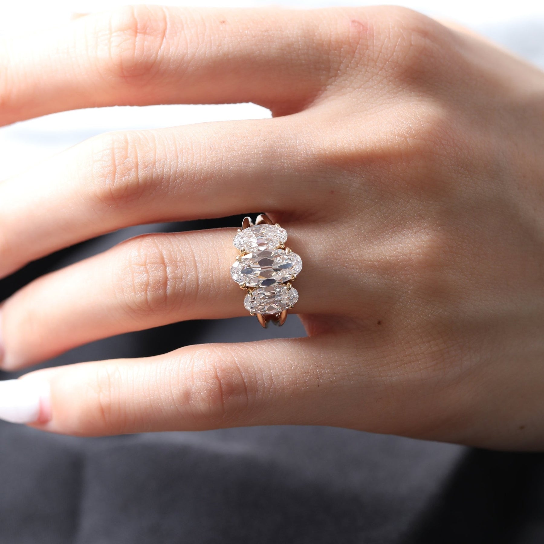 Elongated Oval Old Mine-Cut Lab Diamond Three-Stone Ring with Split Band