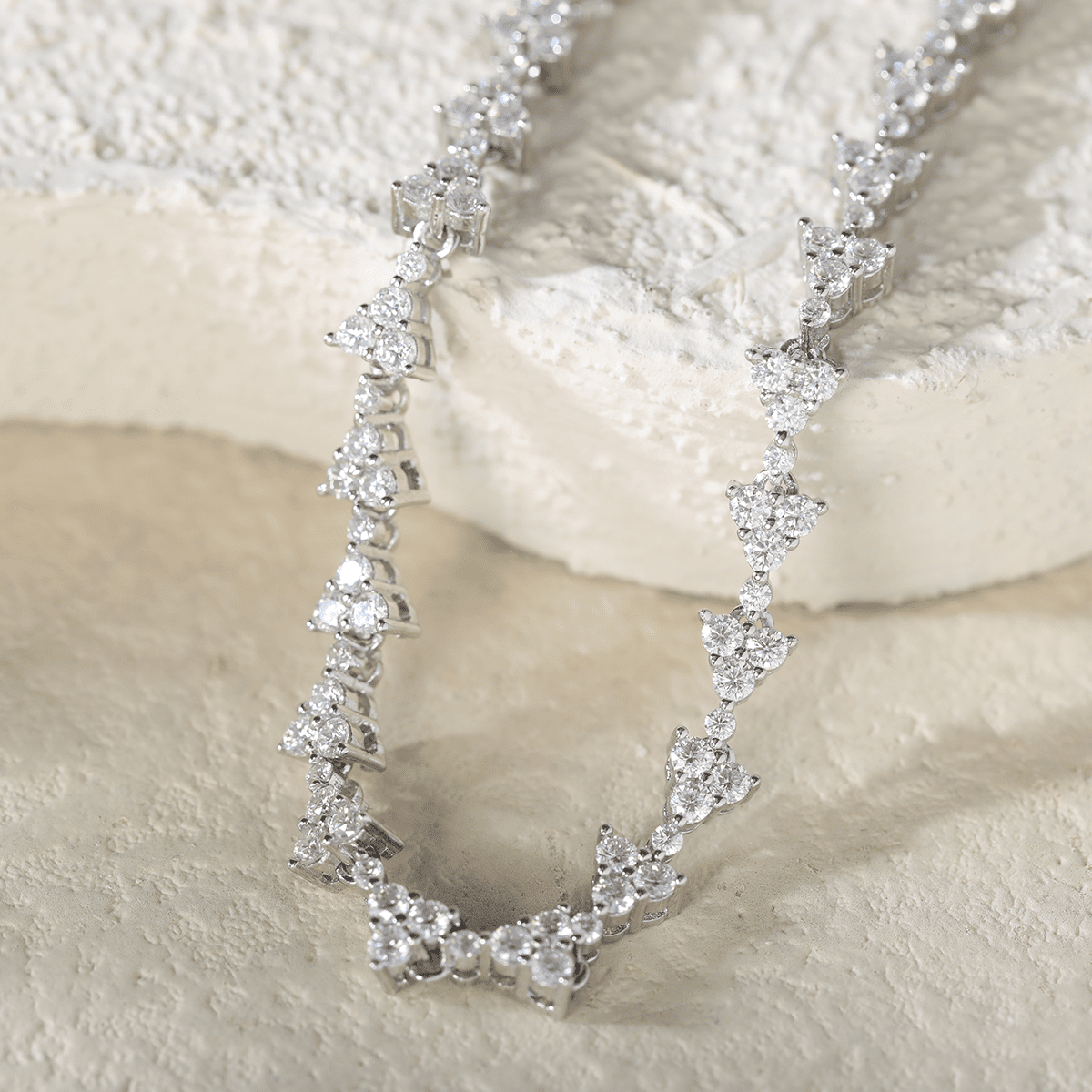 14K White Gold Round Lab Dimaond Cluster Bracelet - FIORESE JEWELRY