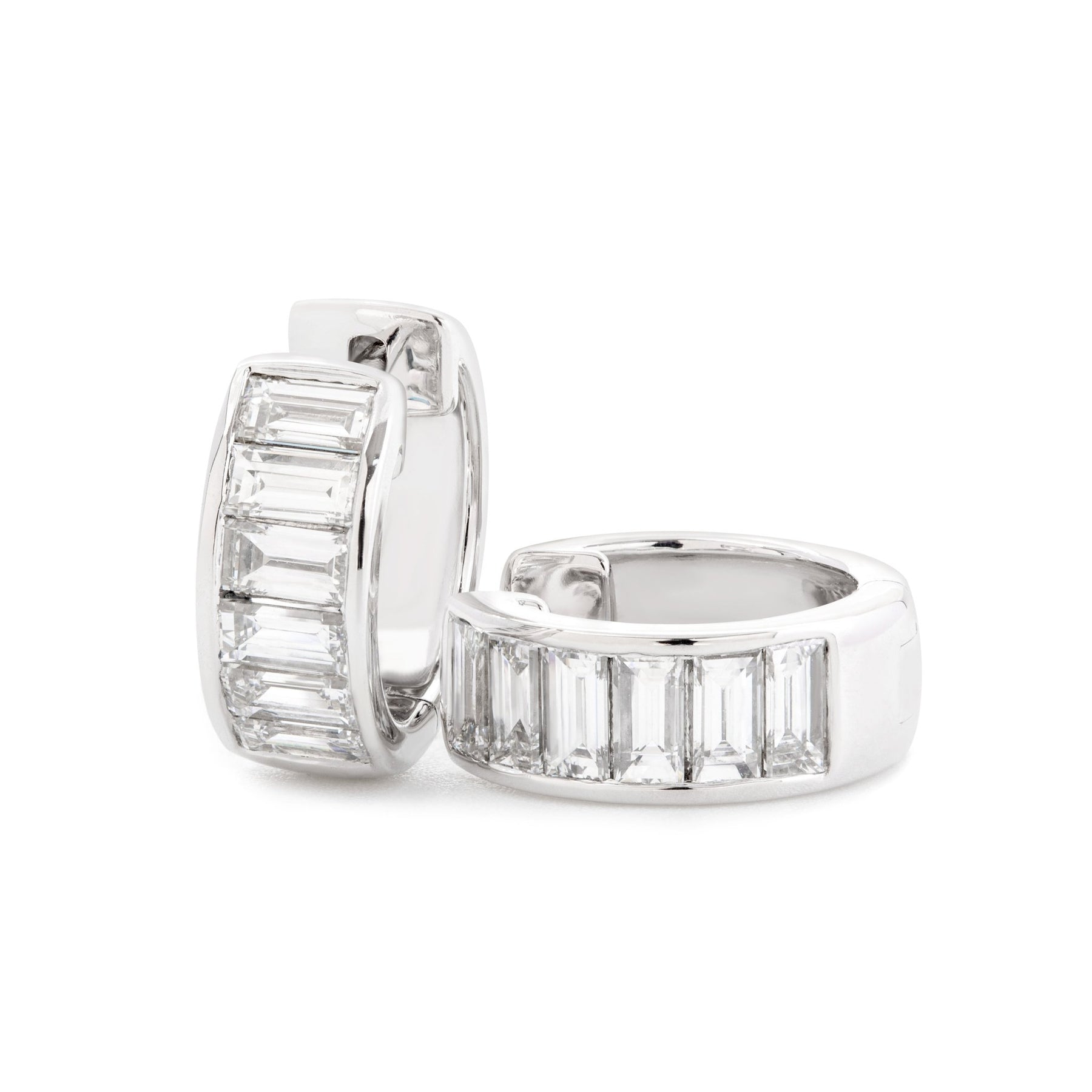 14K White Gold Baguette Cut Lab Diamond Channel Setting Huggie Earrings - FIORESE JEWELRY