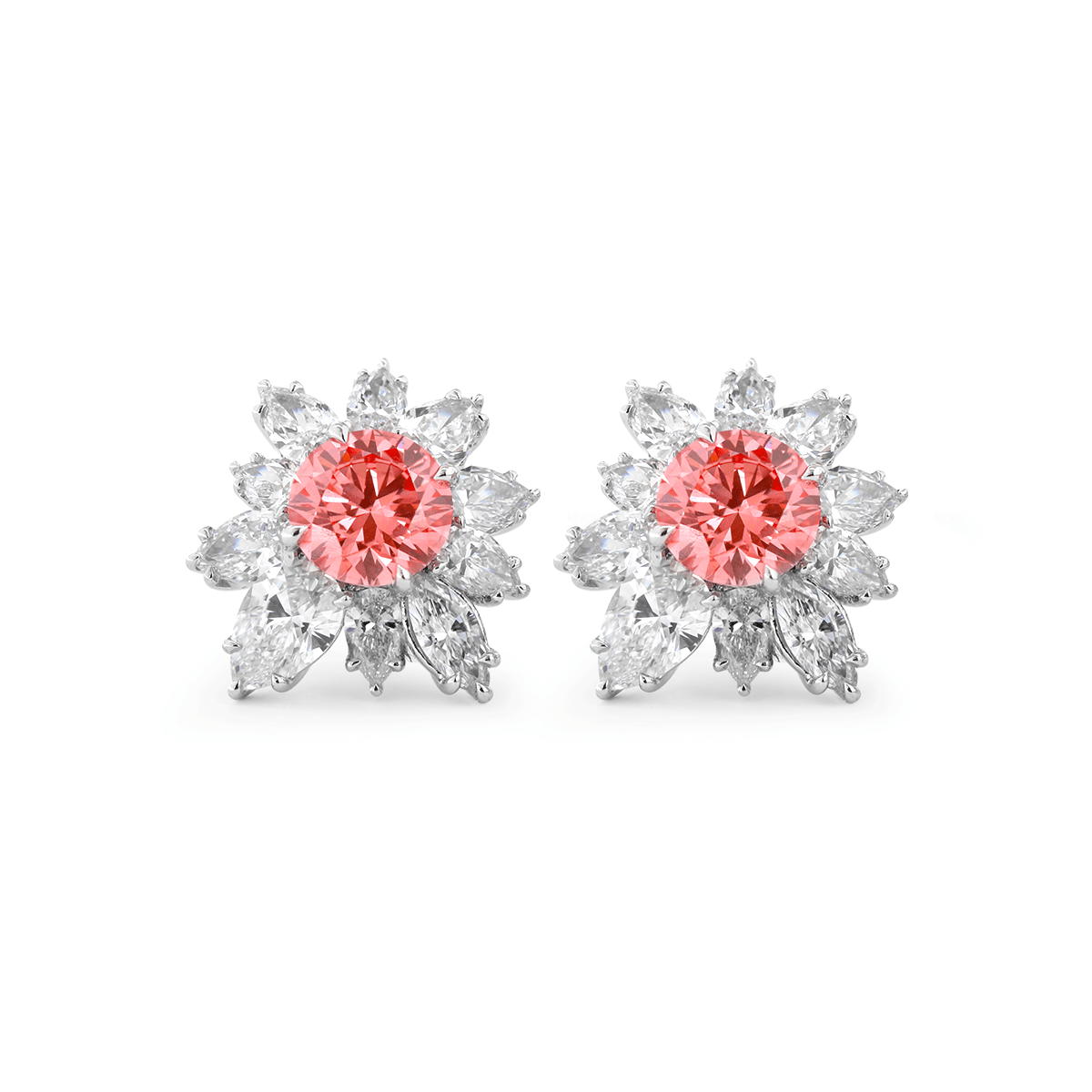 Pink Round-Cut Lab Diamond Floral Nature-Inspired Stud Earrings