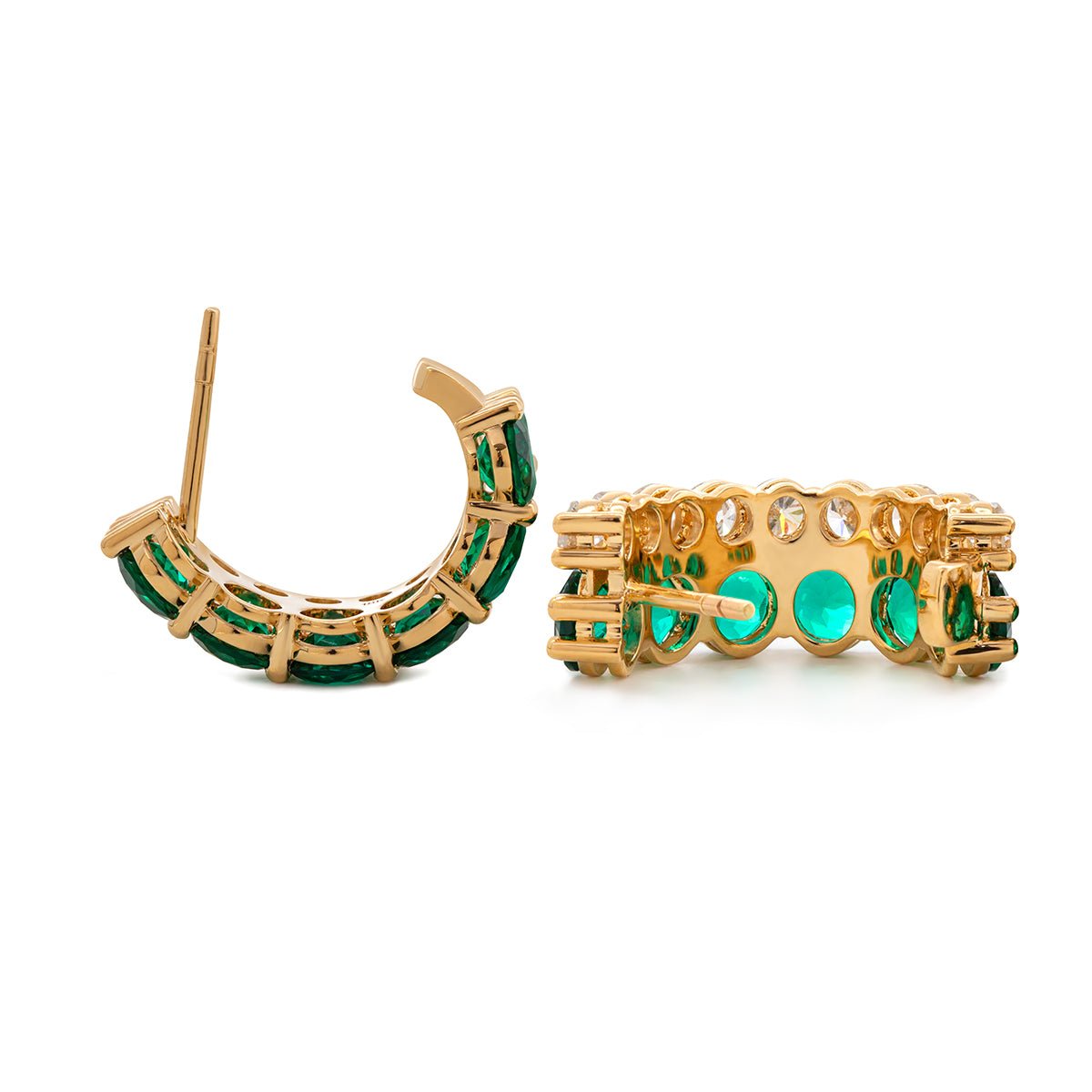 14K Gold / 3.2mm Round Lab Diamond & 4.8mm Round Lab Zambian Emerald / La Pousette Backs - $3,489.00 USD
