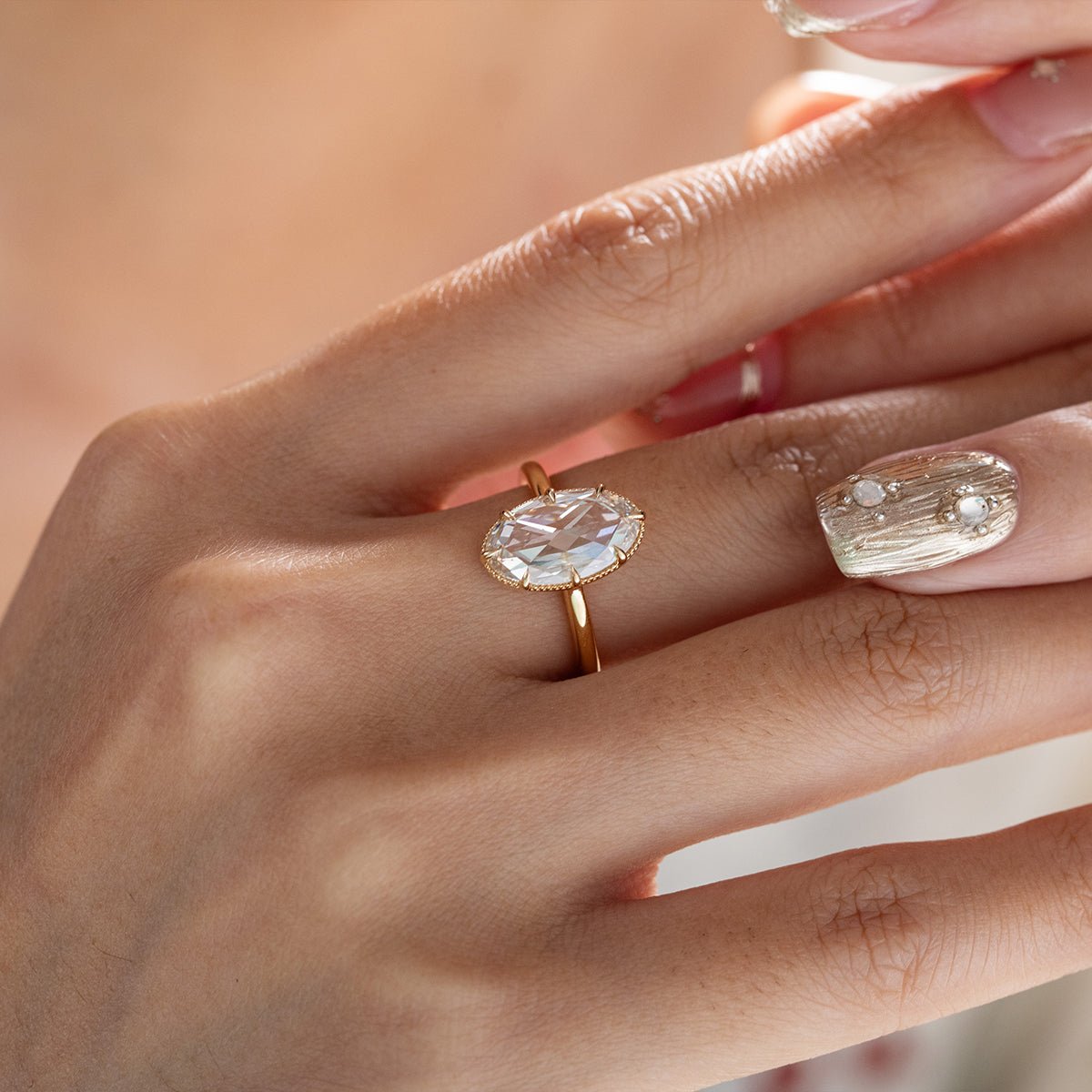 Elongated Oval Rose-Cut Lab Diamond Solitaire Ring with Floating Setting