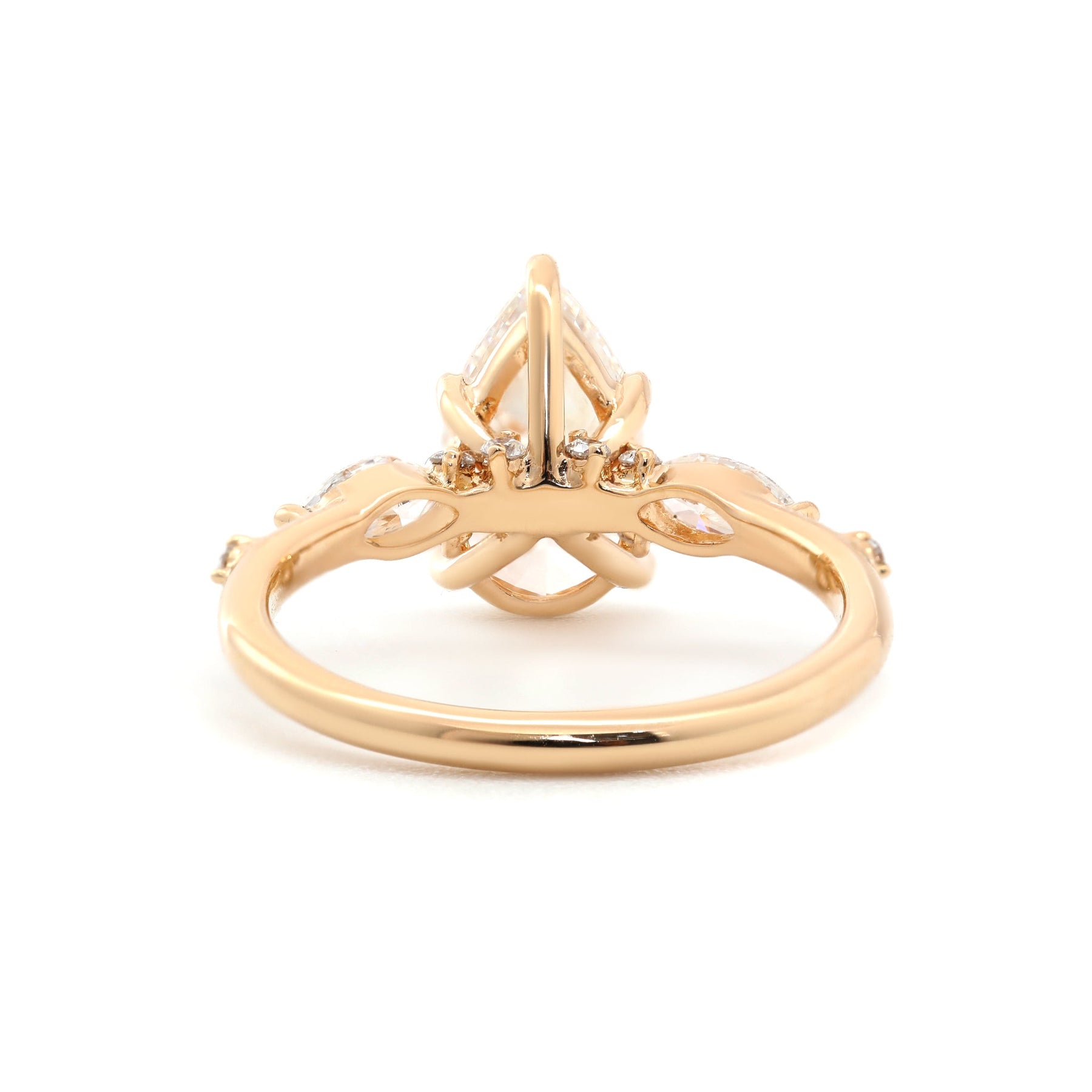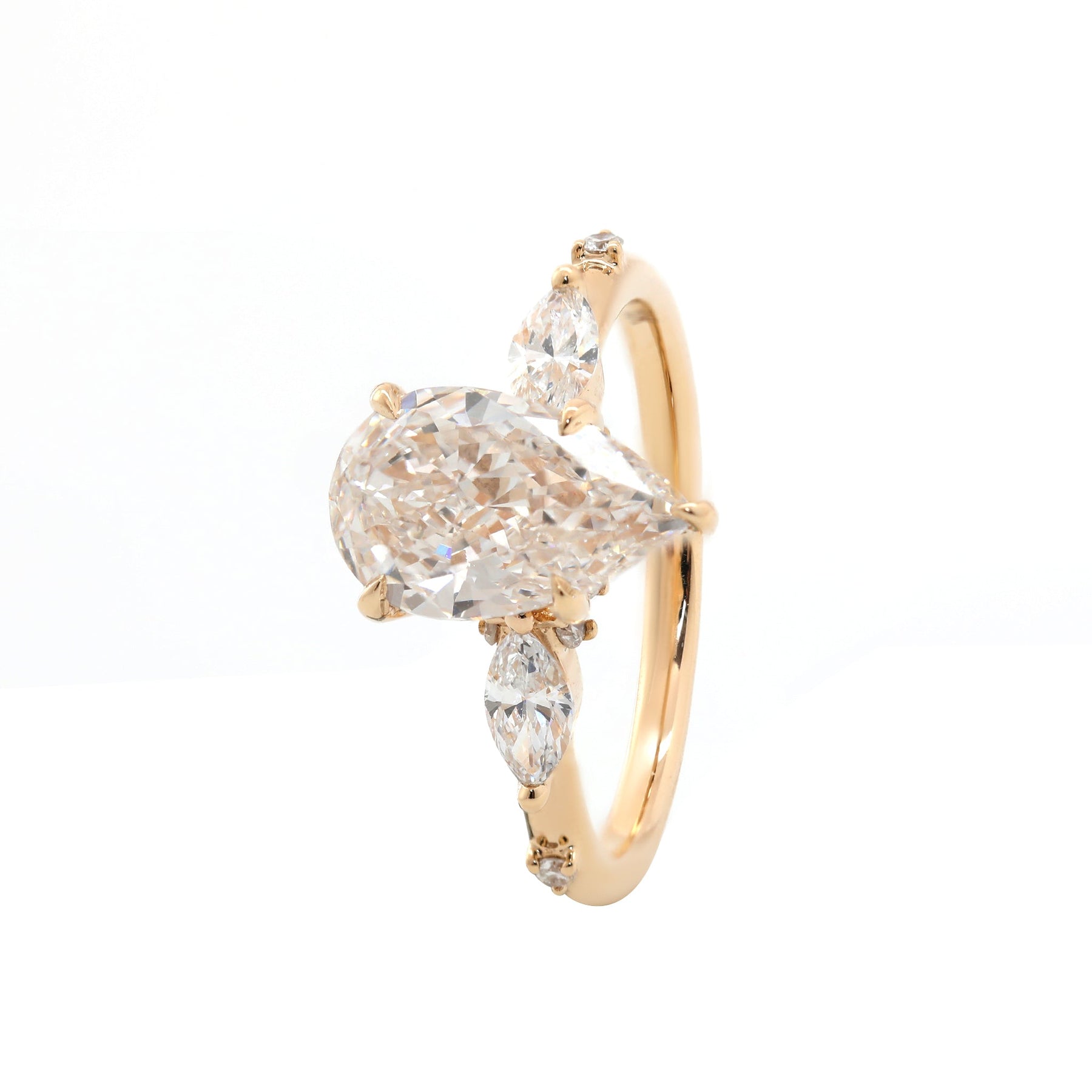 1.648CT Pear Lab Diamond Three Stone Ring with Marquise Side Stones - FIORESE JEWELRY